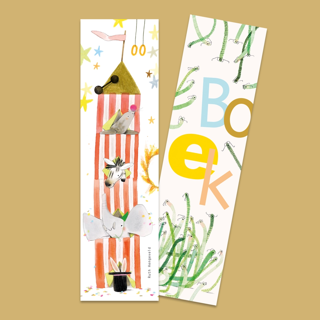 Circus boekenlegger. Gedrukt op papier met een vleugje hennep. De rest van dit papier komt van gerecyclede papiervezels en uit verantwoord beheerde bossen.